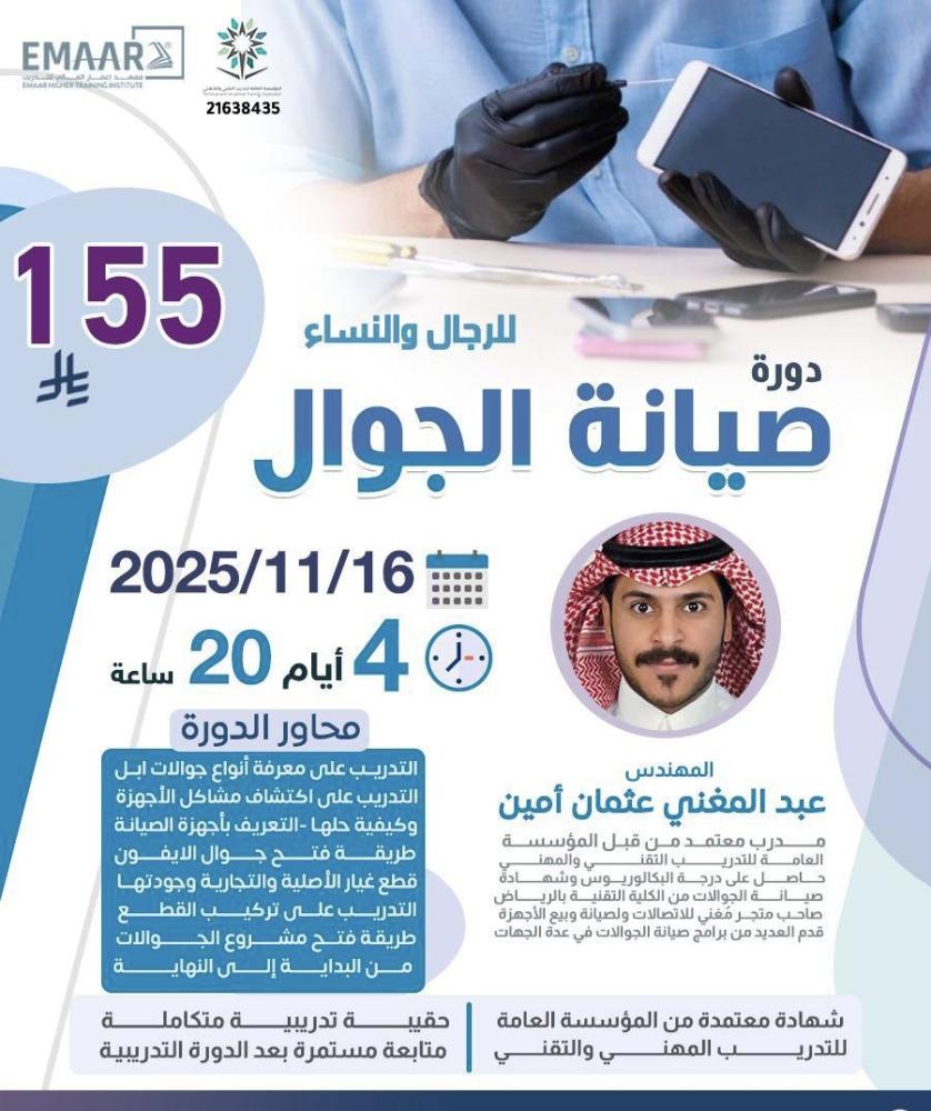 • 📜 الشهادة: معتمدة من المؤسسة العامة للتدريب التقني والمهني