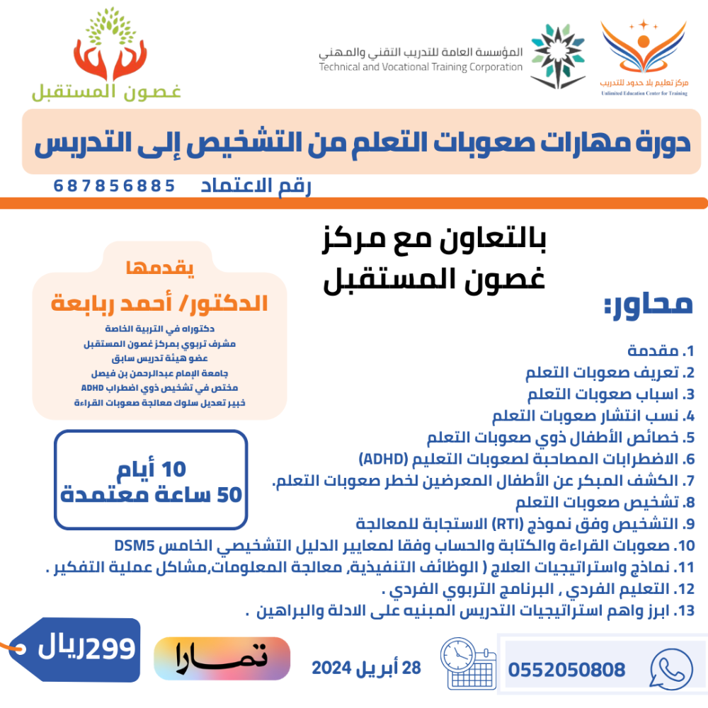 دورة مهارات صعوبات التعلم من التشخيص الى التدريس