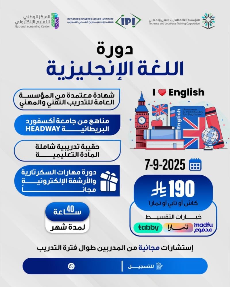 ابدأ رحلتك مع اللغة الإنجليزية مع معهد رواد مبادري العالي للتدريب بثقة!
