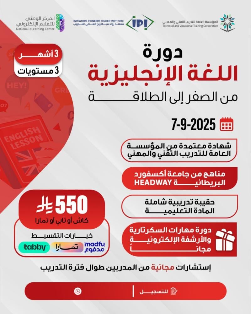 💰 رسوم الدورة: [550 ريال / عروض خاصة عند التسجيل المبكر]