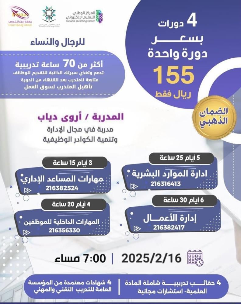 📢 4 دورات تدريبية بسعر دورة واحدة فقط!